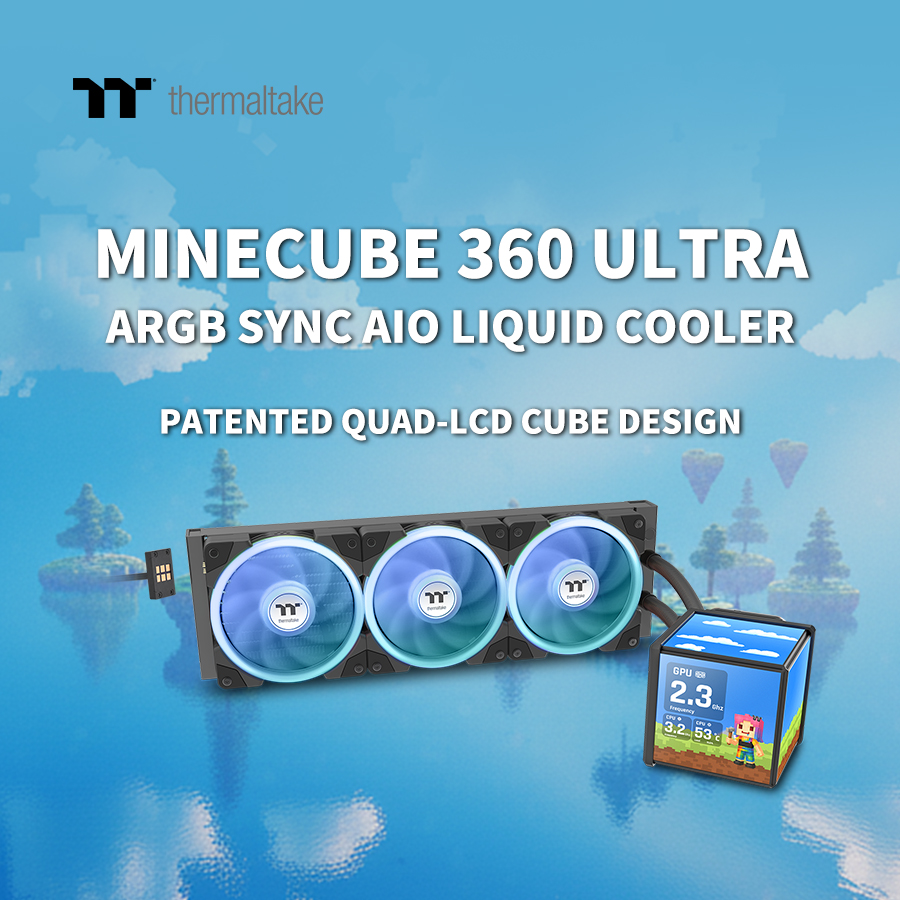 A Thermaltake, a prémium DIY PC-hardvermegoldások vezető márkája bemutatja a MINECUBE 360 Ultra ARGB Sync AIO-folyadékhűtést – egy következő generációs hűtési megoldást, amely ötvözi a művészi kifejezést, az intelligens funkcionalitást és a csúcsteljesítményt. Szabadalmaztatott Quad-LCD Cube kijelzővel és fejlett hűtési tervezéssel felszerelve, ez az innovatív AIO újradefiniálja a rendszer személyre szabhatóságát, egy teljesen magával ragadó digitális központi elemmé alakítva a CPU-hűtést azoknak a gépépítőknek, akik az esztétikát és a pontosságot egyaránt értékelik. A fekete és Snow kivitelben kapható MINECUBE 360 Ultra jellegzetes vizuális mélységet és kivételes hűtési hatékonyságot biztosít a modern PC-konfigurációknak.