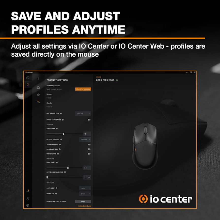 Legyen szó akár Dark Mount, akár Light Mount mechanikus billentyűzetekről vagy épp Dark Perk Sym és Ergo egerekről, az IO Center a kezedbe adja a teljes irányítást. Lehetővé teszi a LED-ek színének megváltoztatását, felhasználói profilok szerkesztését és mentését, egyéni makrók készítését vagy éppen a gombok funkciójának átprogramozását igényeid szerint.